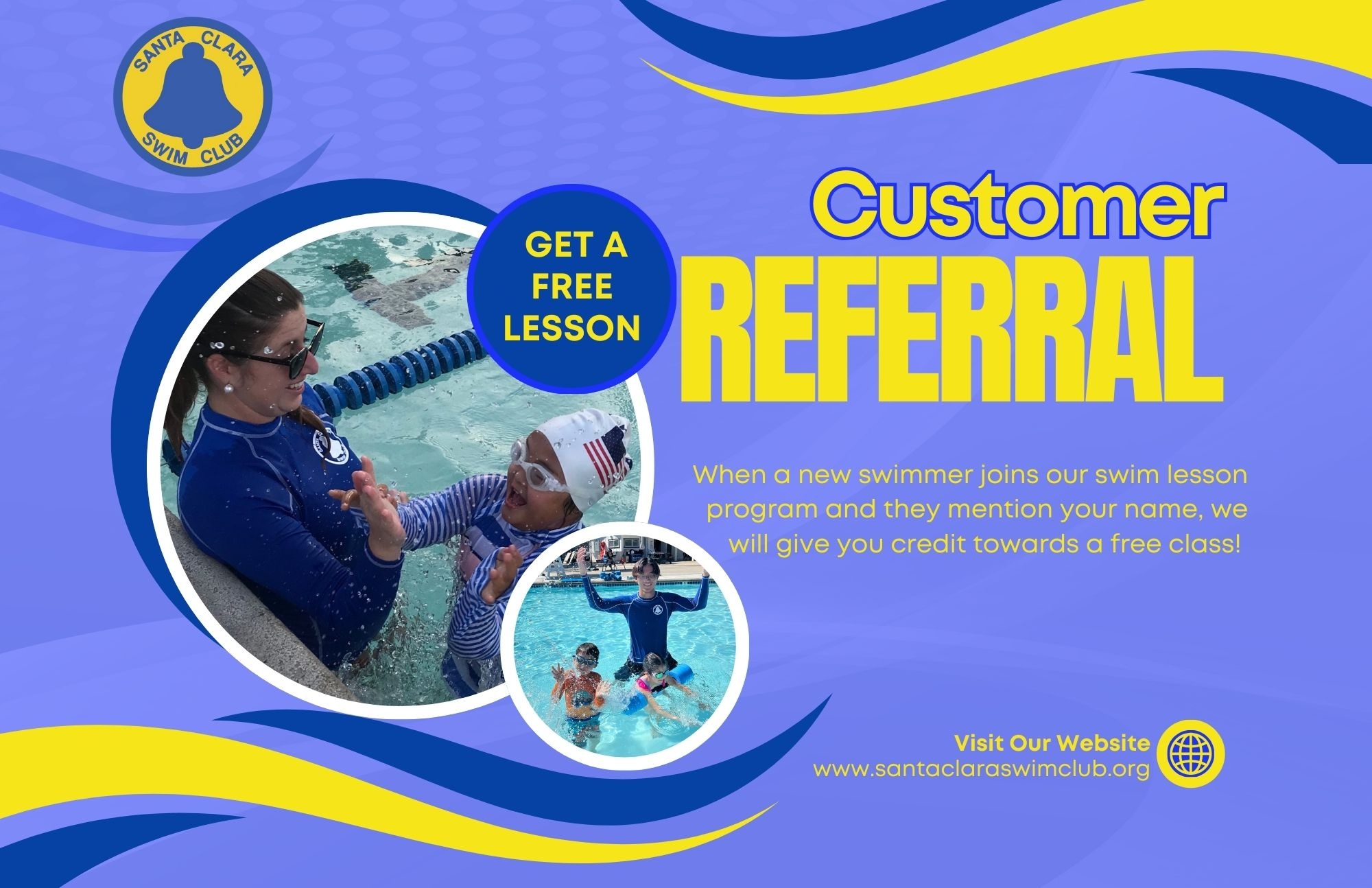 The Santa Clara Swim Club’s swim lesson program aims to teach the sport of swimming to swimmers of all ages, abilities, and skillsets. We value each swimmer as an individual, embracing their abilities, encouraging growth, and inspiring each student to do their best in an inclusive atmosphere. Our goal is to start with basic techniques in all 4 strokes, while teaching water safety skills, giving swimmers the tools and discipline they need, to ultimately become competitive athletes.