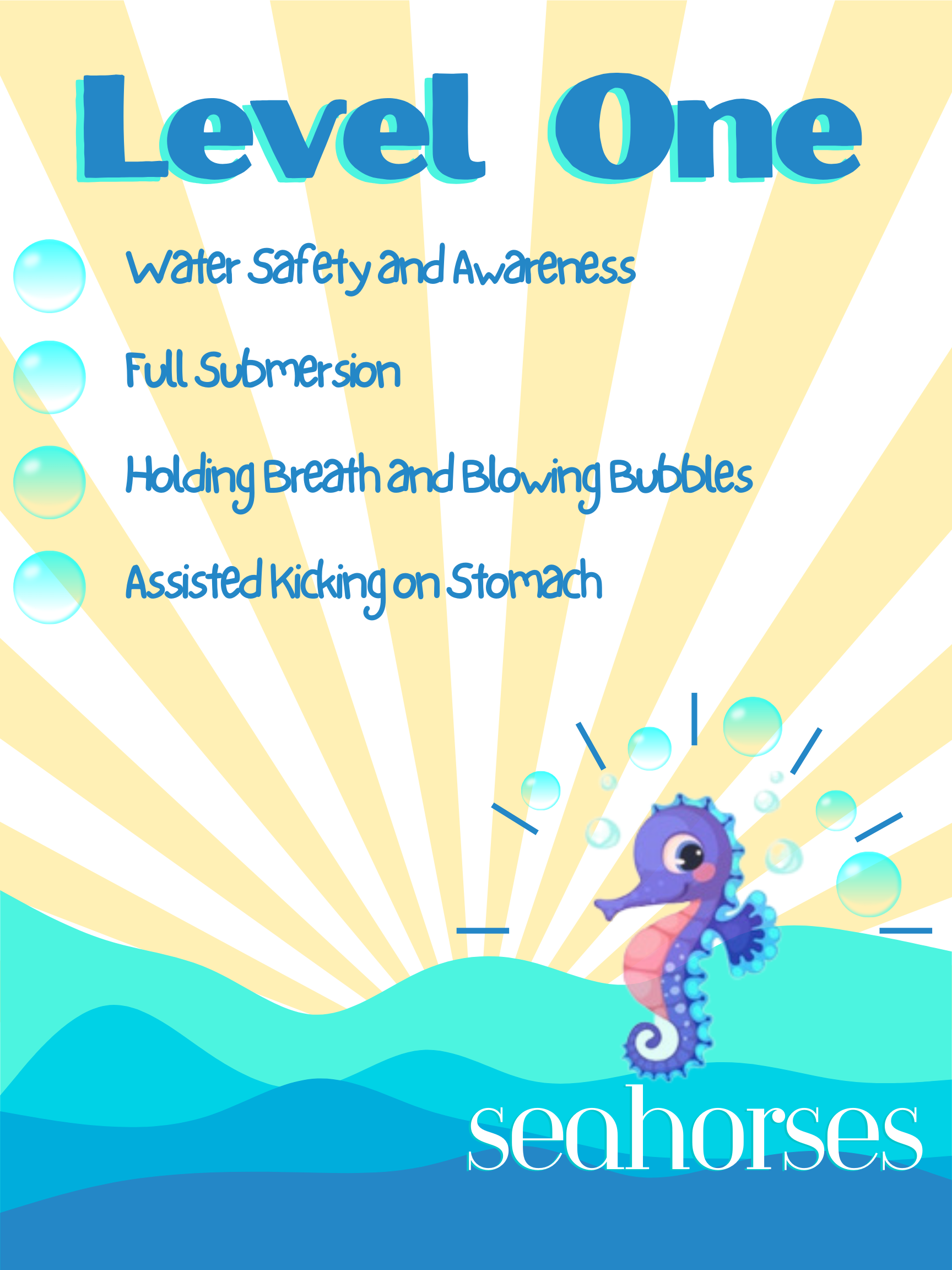 The following descriptions determine the initial placement of your child. Once your child masters the advancement goals in each level, he/she will move to the next level. Children advance at their own pace, depending on his/her physical skill and maturity. When selecting a level for your swimmer, please ensure he/she has mastered all of the goals outlined in previous levels.