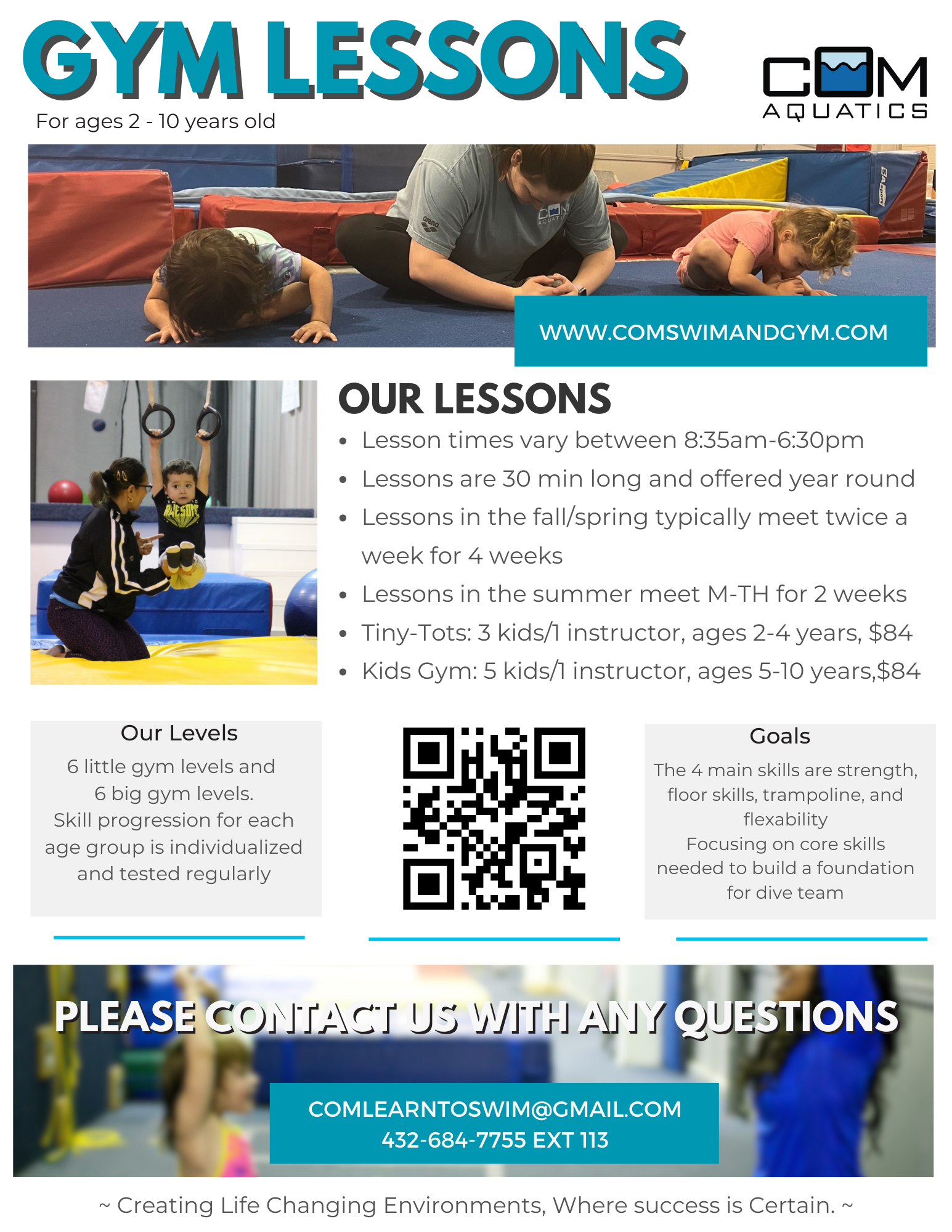 COM's Kids Gym offers diving preparatory lessons including balance, body mechanics and more.