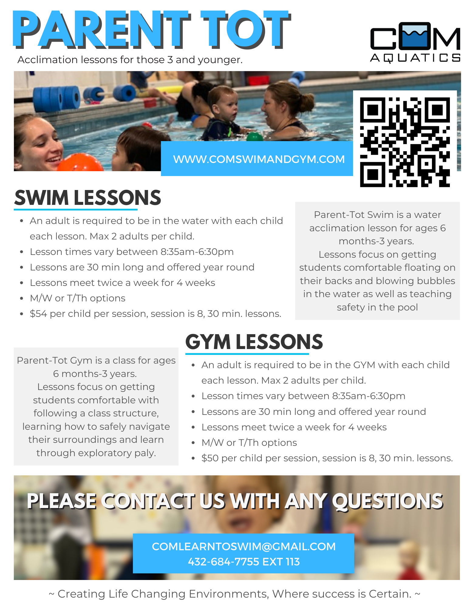 Call us at 432.684.7755 ext 113, email us at [email protected], or visit the Swim & Gym Facebook page.