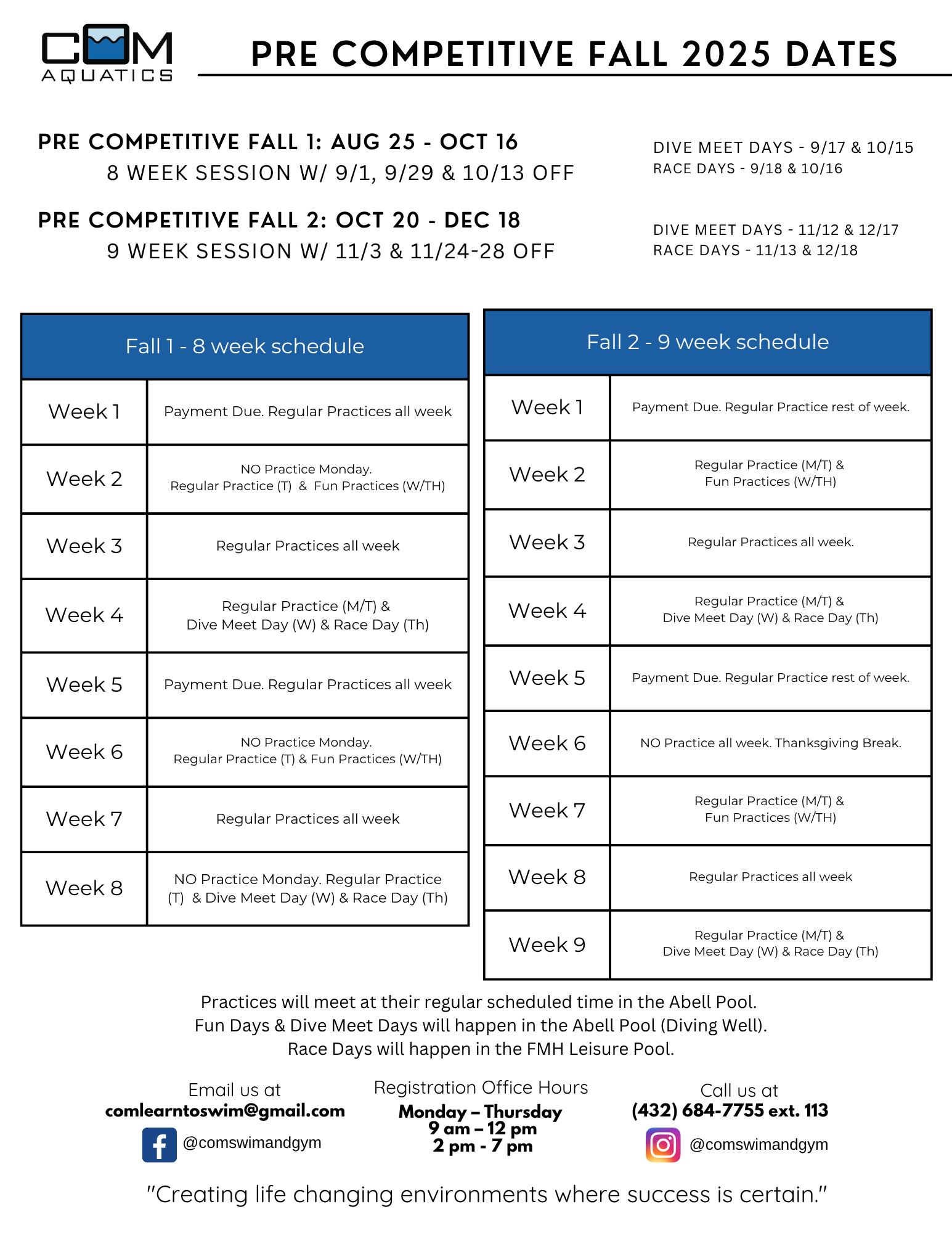 2025 Pre-Competitive Group: 8 kids/ 1 Coach $248 per child for 8 weeks / $310 per child for 10 weeks