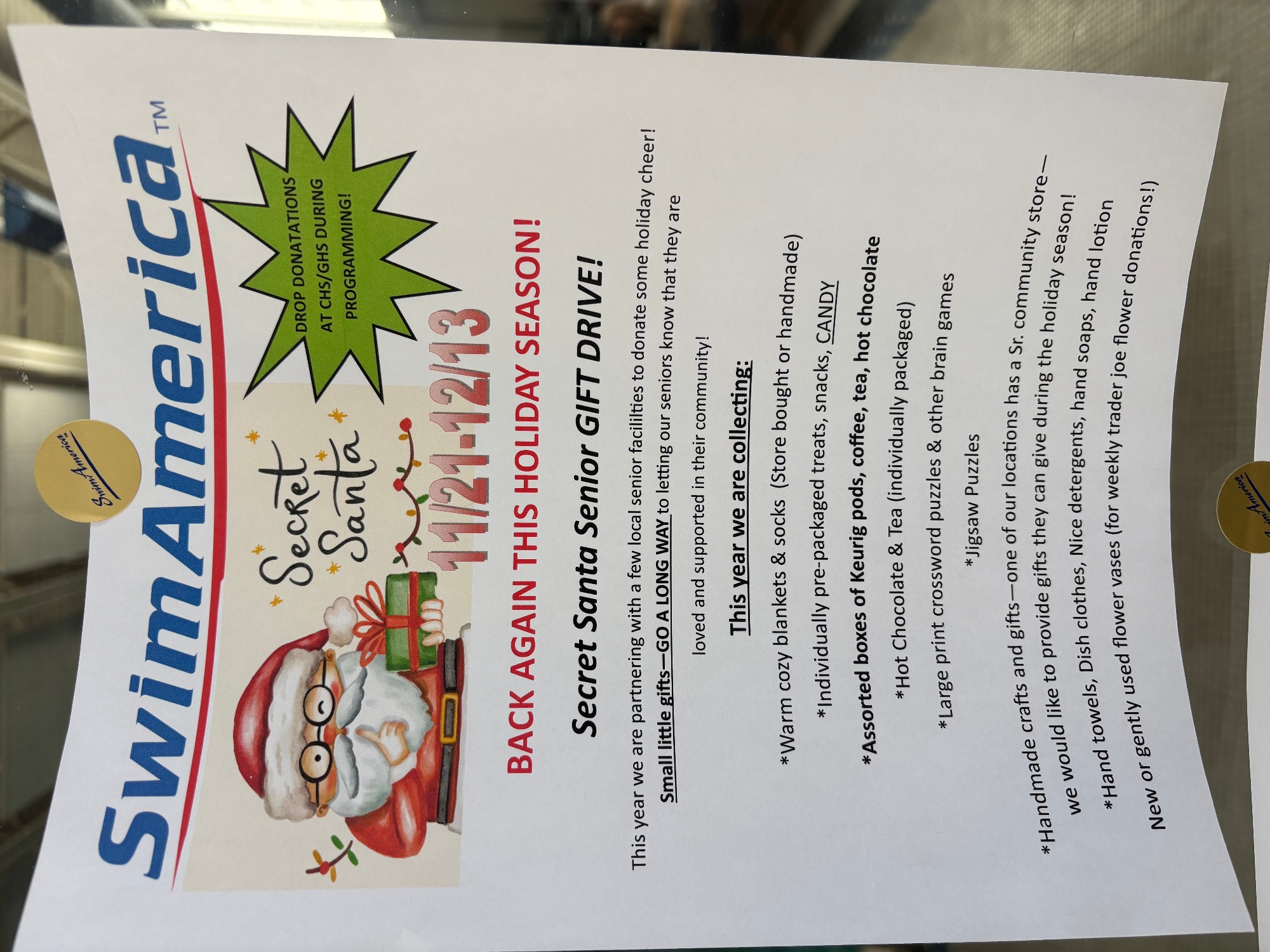 IF YOU WOULD RATHER HAVE OUR ELVES GO SHOPPING FOR YOU - Venmo: @swimamericaoz. (#7750). Note: Santa