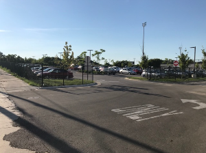 Parking: Upon entrance into the main school lot, there will be a fenced in parking lot to your left (See photo below). The parking lot is monitored by a security guard. The front roundabout lot is for school business only.