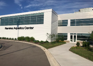 Building Entrance: After parking, use the facility doors on the south side of the building closest to the track. The pool is labeled “Ramirez Aquatics Center”. Please use the doors shown in the photo below.