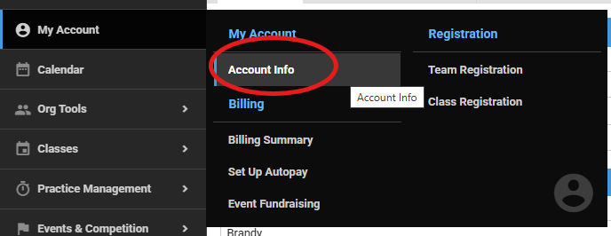 On the left hand menu, hover over Acount. In the menu that pops up, select Account Info..