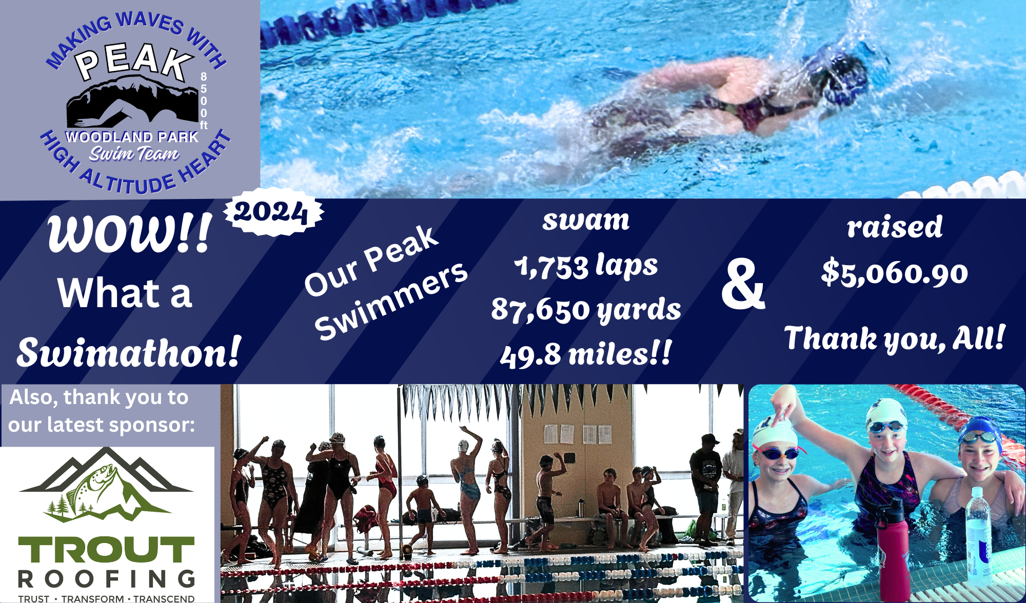 Peak Swim Team is a 501c(3) nonprofit, competitive team that provides training and practice for swimmers (aged 5 on up) of all experiences and abilities in beautiful Woodland Park, CO, at a stunning 8,500 feet. We have competitive swimmers of all ages who are dedicated solely to the sport of swimming, swimmers who are also involved in other sports and clubs, and those who simply swim because this is their choice for healthy activity. We have seen incredible results with swimmers as they learn the importance of effort and responsibility, along with the importance of proper technique of each stroke while also participating in games and other engaging activities. In short, we encourage our athletes to reach their peak potential.