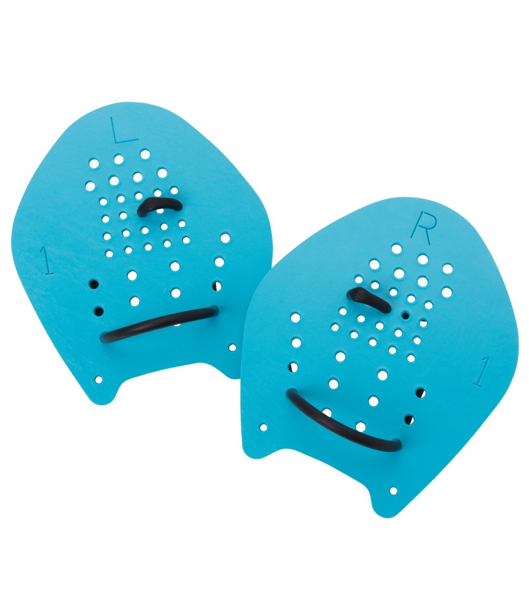 Hand paddles, sizes are determined by color. Most of our swimmers will need blue or green.