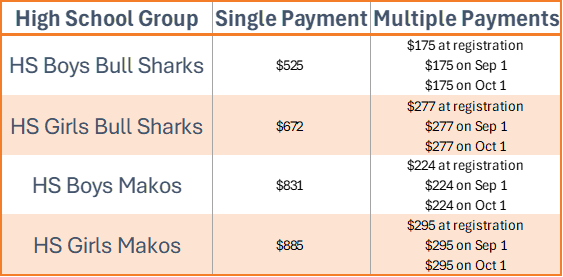 - Season Begins: Tuesday, September 2nd, 2025 (Monday August, 18th, 2025 for Makos & Tiburones)