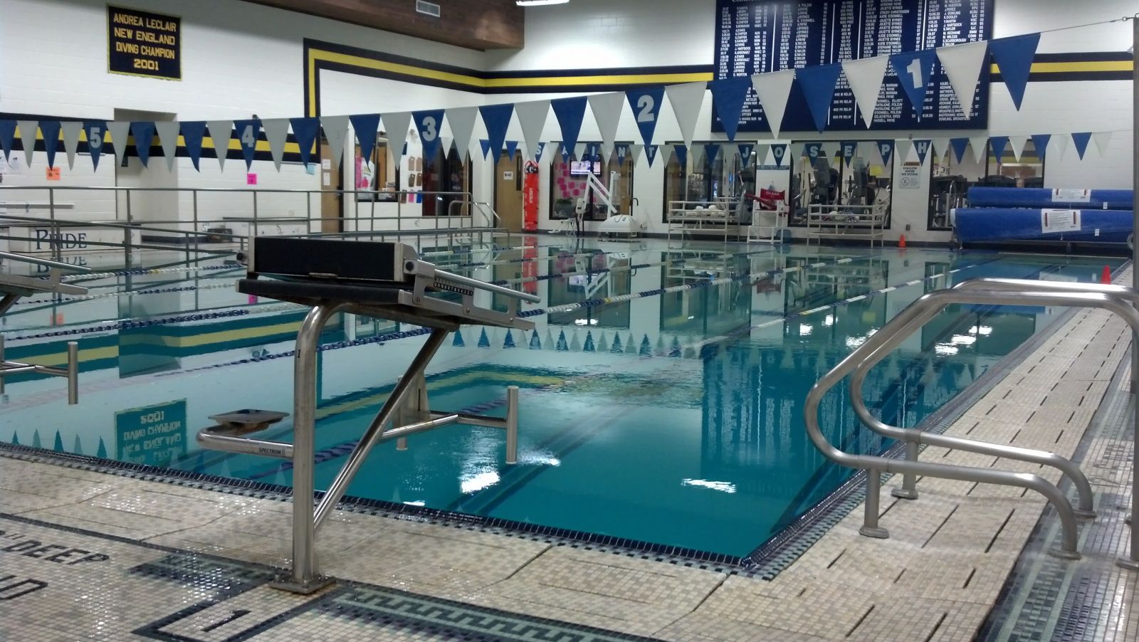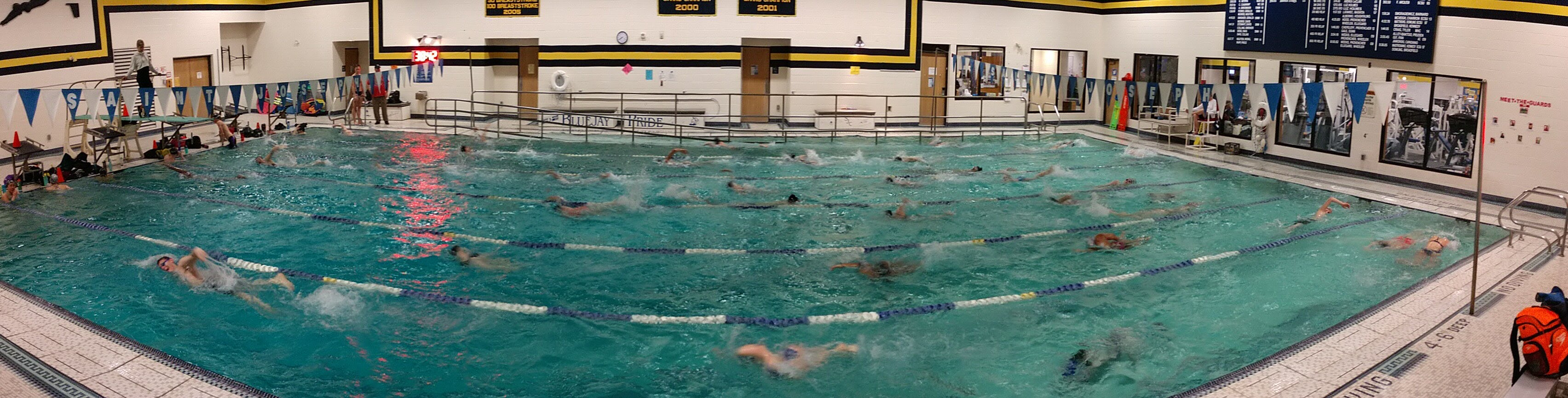 Located inside the O'Connell Center is the Bruyette Natatorium, a six-lane 25 yard pool with a one-meter diving board, electronic scoreboard, bleachers, handicap access and a kids slide. The Blue Jays swimming & diving team makes their home in the natatorium hosting several events each season. Adjacent to the pool are men's and women's locker rooms and the swim team coach/aquatics director office.