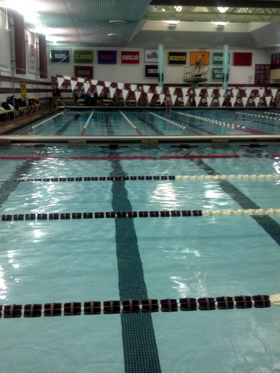 Getting ready for warmup at the Region 1 Swimming Championships at Union College!!