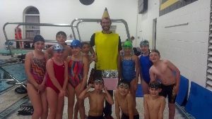 WHAT has the best coaching staff in the state!!! Coach Aaron was disappointed he could not spend Halloween with his WHAT swimmers, so tonight he made up for it!!! One of his swimmers was kind enough to lend him the costume she wore the other night!! We gave Coach Aaron a bag of candy for his good sportsmanship!!!