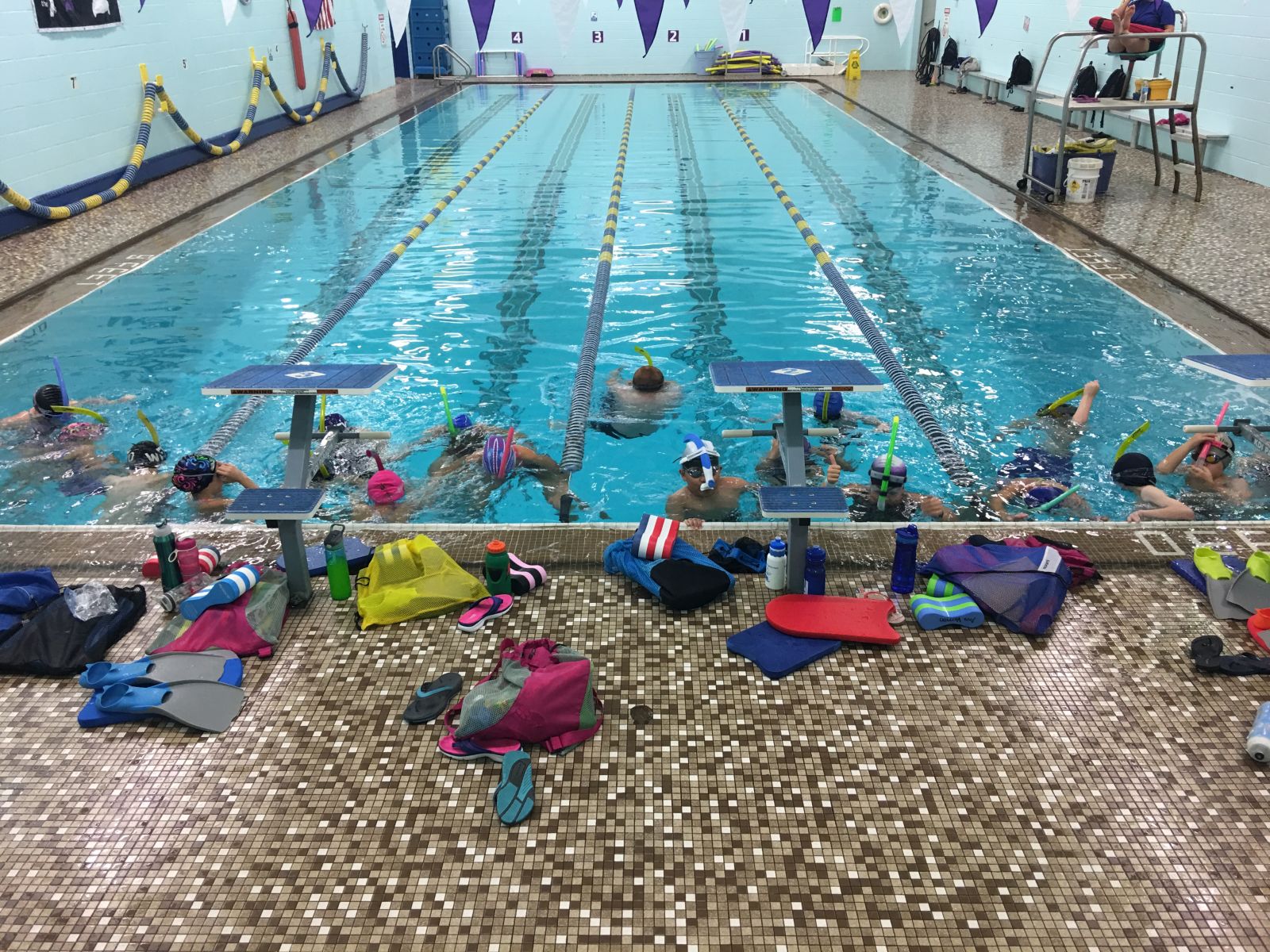 - Age Group 2: Snorkel, kickboard, fins, pull buoy, mesh equipment bag