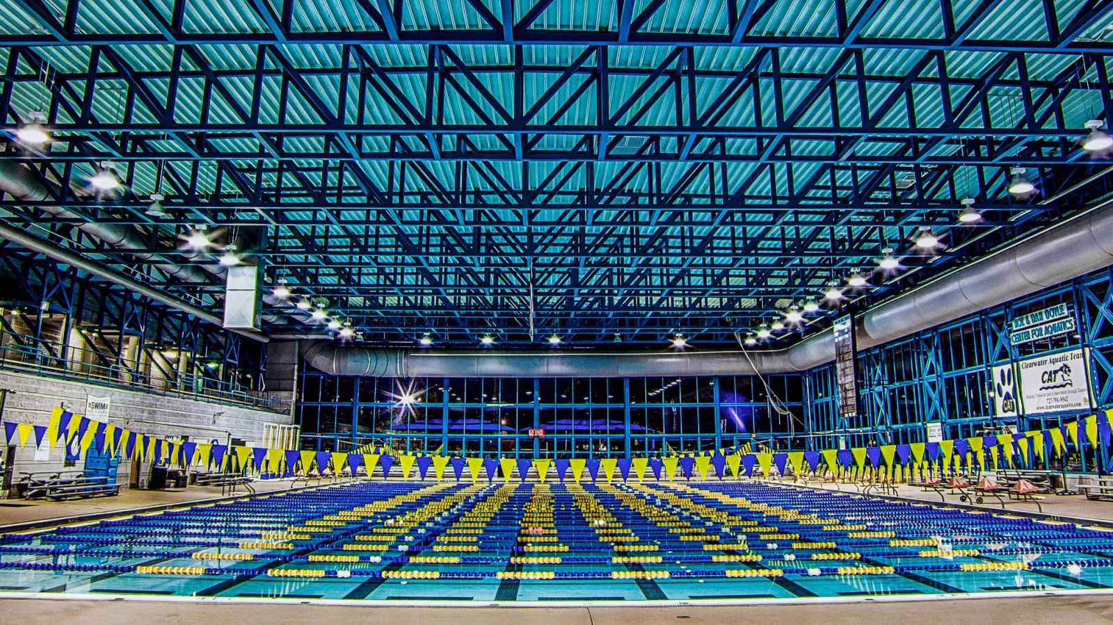 Facilities: One 25 x 50 meter indoor pool with two 25-yard, 10-lane courses with non-turbulent lane lines and one 25-yard , 3 lane pool.
