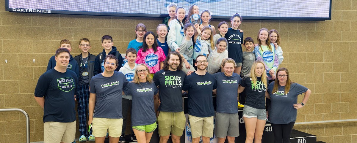 Sioux Falls Swim Team is a USA Swimming year round competitive swim team offering high quality professional coaching and technique instruction for all ages and abilities. The goal of our team is to provide every member an opportunity to improve swimming skills and achieve success at his or her level of ability, from novice to international competitor. Sioux Falls Swim Team PO Box 758 Sioux Falls, SD 57101 For Information Call: (605) 610-9427 (Monitored Google Line)