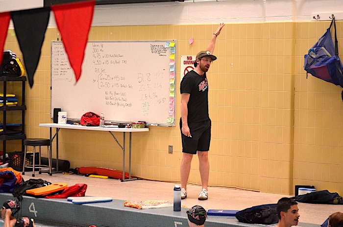 It’s not uncommon for the swimmers to laugh and chat as they stand at the wall waiting for instruction from Coach Kip or Coach Mike. When the set is given, the swimmers barter to alter the set, sometimes they win-sometimes they don’t, but they always put in the effort, working hard in their “fast” pool. Today is a speed and power day, giving time for the athletes to rest in between, where the void of splashing water is filled with their voices and heavy breathing.