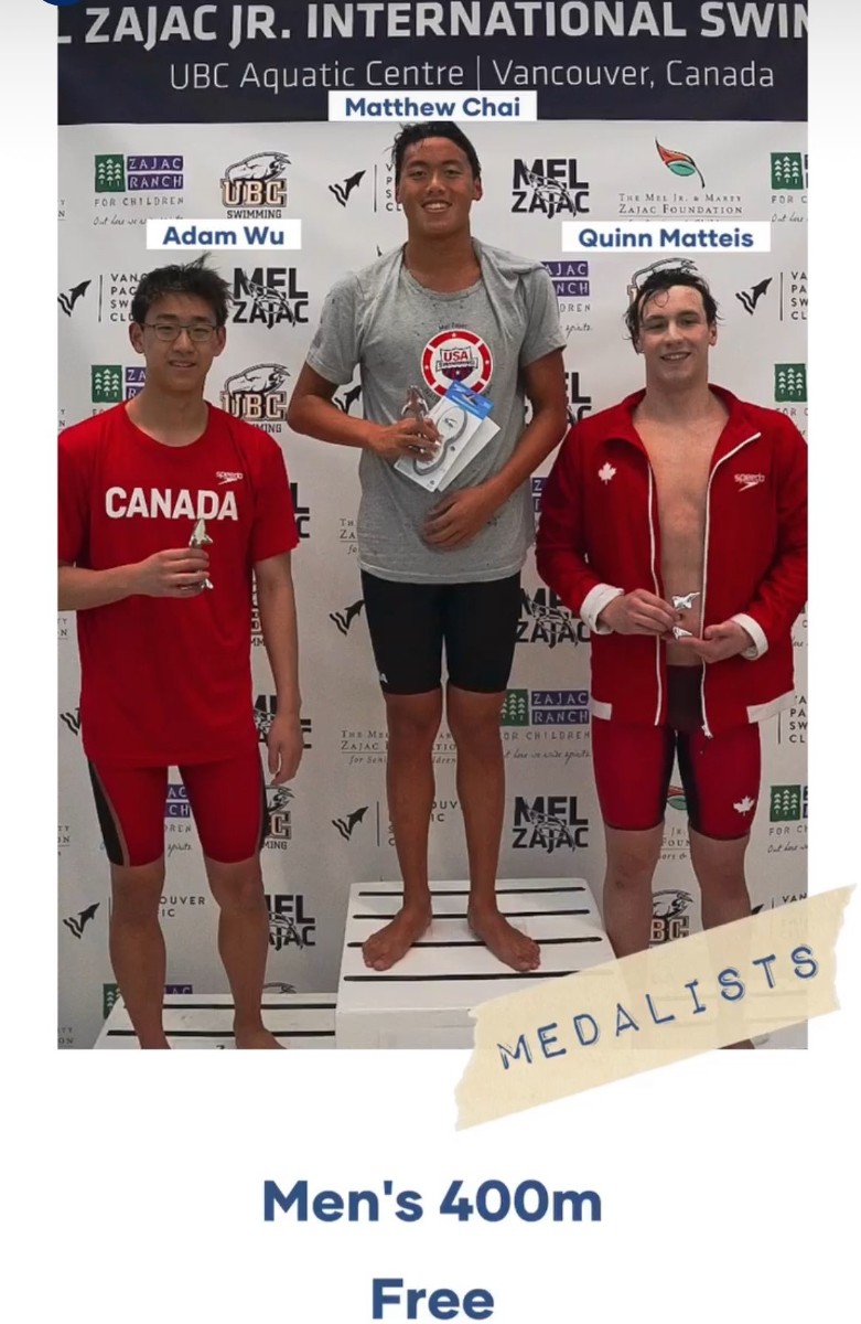 In his first-ever international competition FAST's Matthew Chai won the 400, 800 and 1500-meter Freestyle events last weekend in Vancouver.