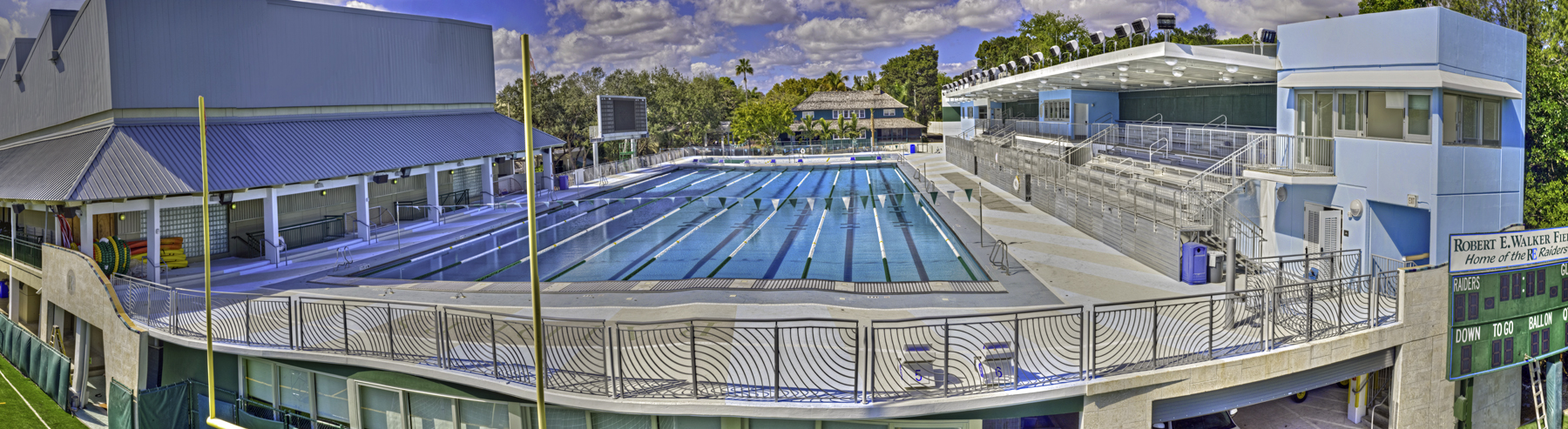 The Broad Reach Pool is a 5-lane, 25-yard shallow instructional pool. This pool is 4 ft. around the perimeter and has a maximum depth of 5 ft. The pool, which is available for warm-ups and warm-downs during competitions, serves primarily as a teaching pool for swimming lessons. Students from Breakthrough Miami, local schools and the Ransom Everglades Summer Camp share the benefits of this facility.