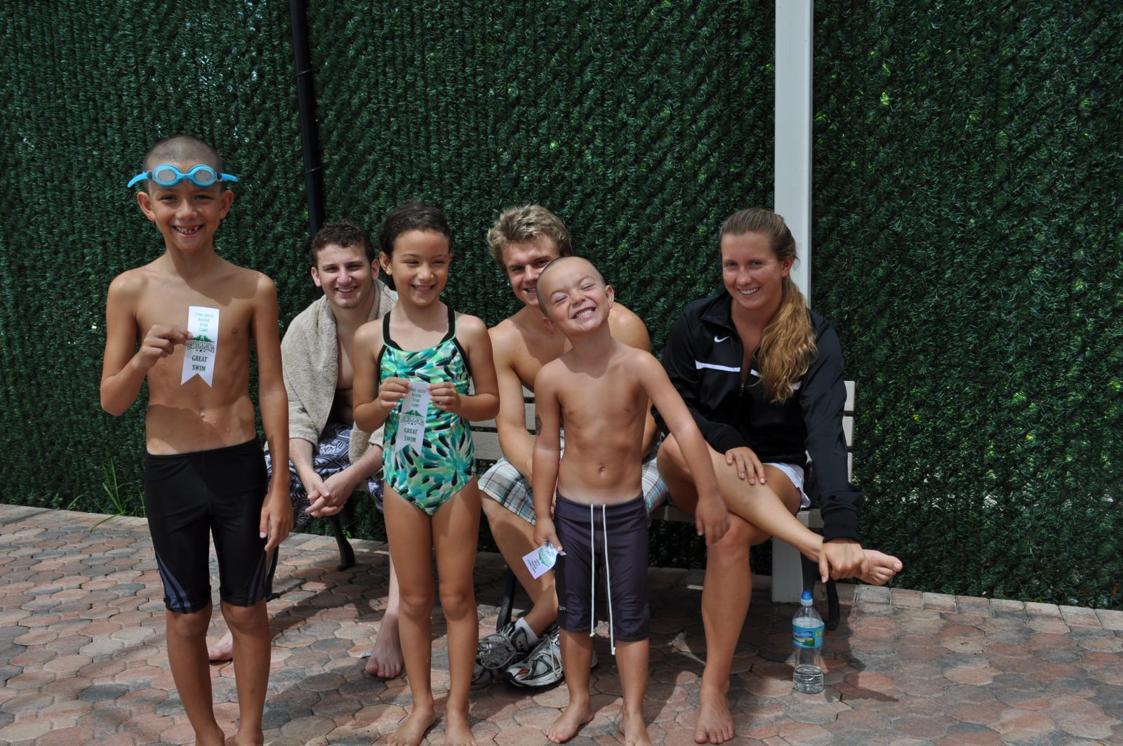 Our Rising Star Swim & Dive Camp from Fort Lauderdale had another week of fun. 27 swimmers enjoyed the Popcorn Tuesday, Race Day Thursday and of course the Field Trip to Boca on Friday. The rain arrived late morning, but that did not stop the fun and of course visiting the Arcade Game Room was a treat. The rain stopped in time for our weekly visit to the Turtle Garden and to see the birds and rabbits.