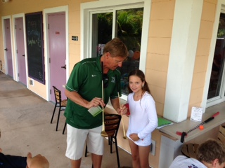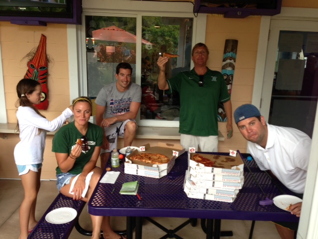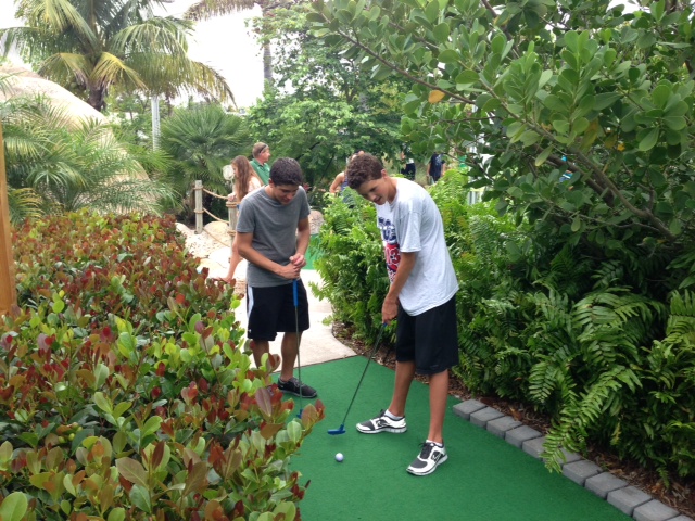 On Saturday, April 13 our Age Groups (White / Green I / Green II) started the day with a combined practice at the Boca Raton campus making plenty of white water with some awesome kick sets. Followed by a pool side brunch of juice and bagels, then headed to Put'nAround Golf Course in Delray Beach for a round of putt putt. Twenty six golfers along with six coaches enjoyed the 2nd Annual Putt Putt Golf Tournament. The rain stopped the event at the 17th hole, but didn't stop the fun with pizza and the Golden Putter Award which followed.