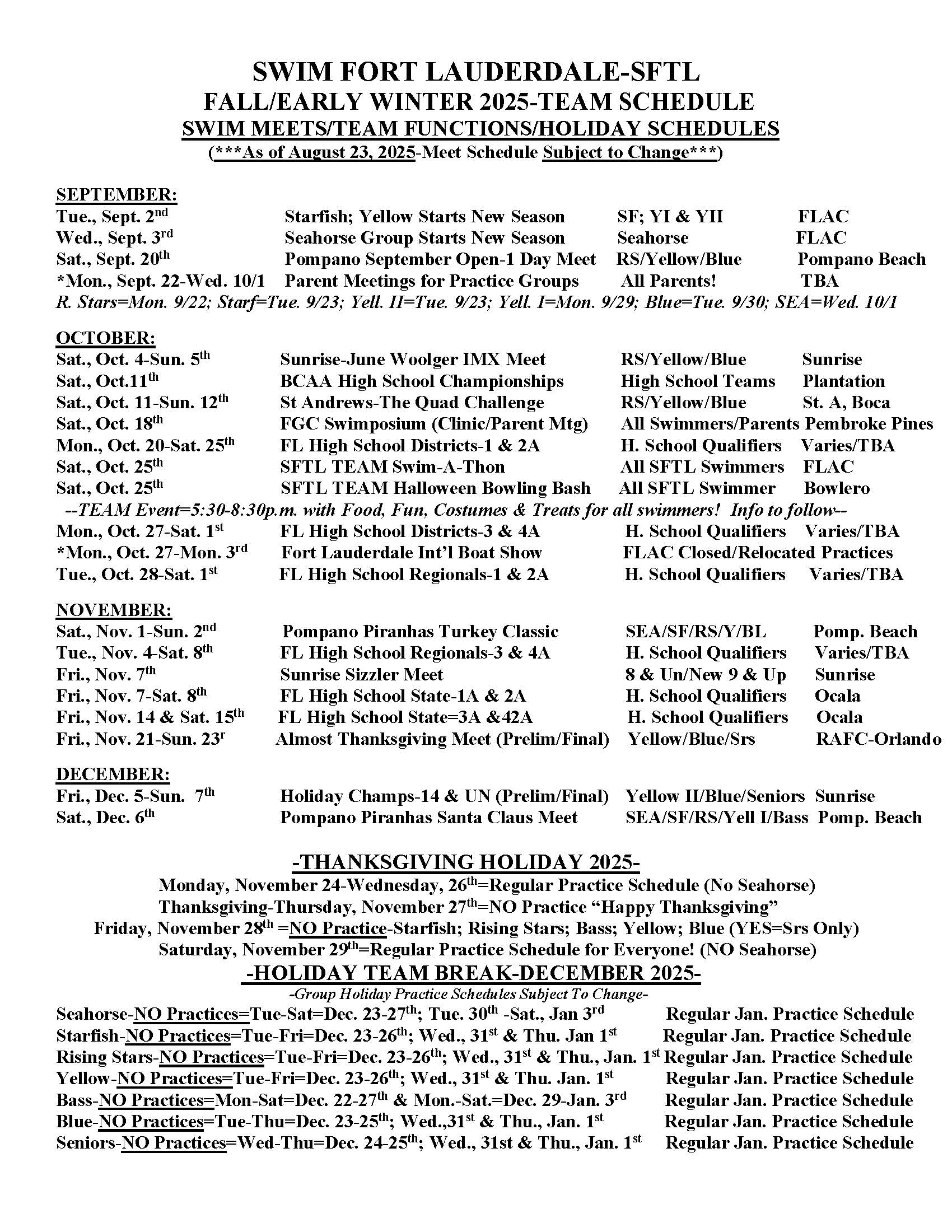 SPRING & SUMMER AGE GROUP / SENIOR GROUP MEET SCHEDULE
