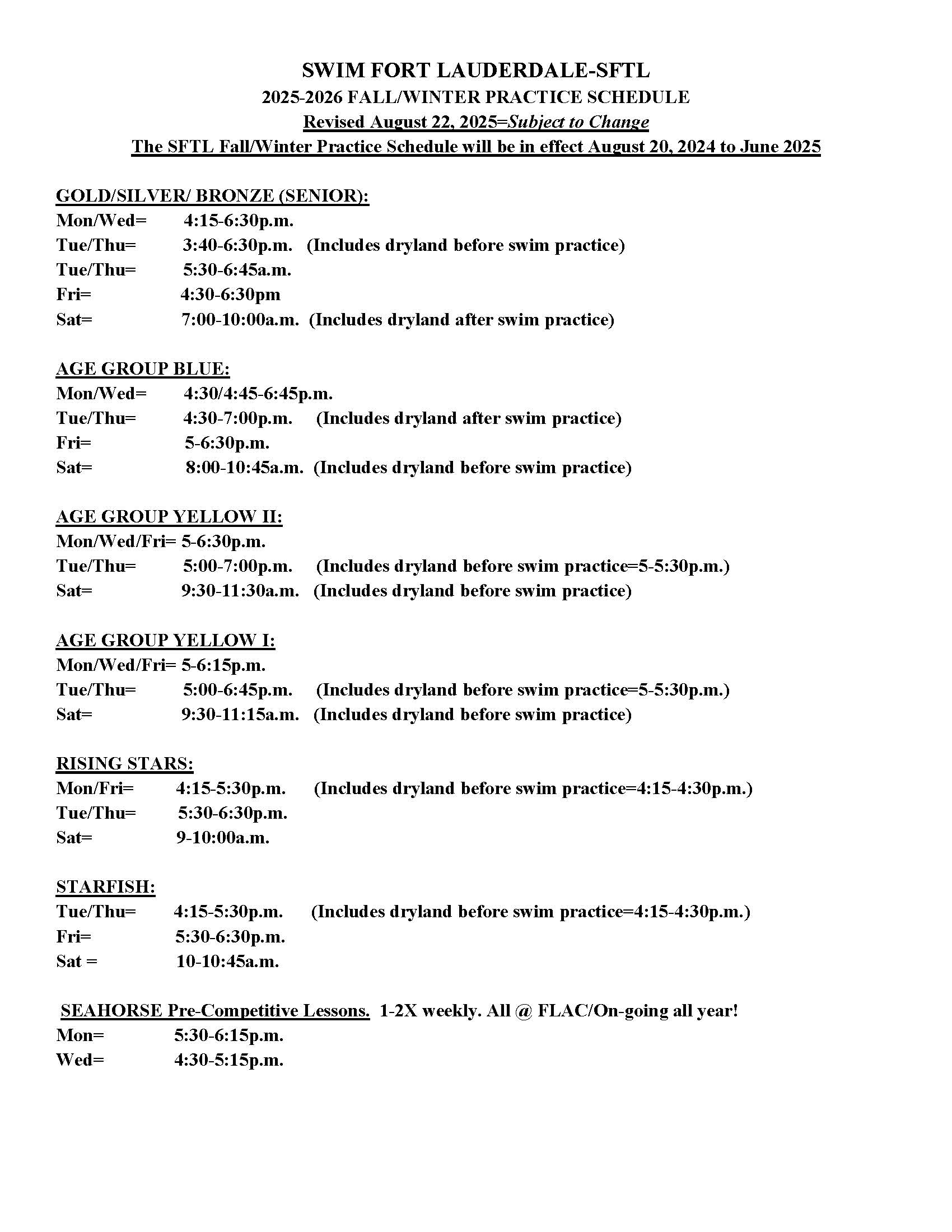 FALL & WINTER AGE GROUP / SENIOR GROUP PRACTICE SCHEDULE(S)