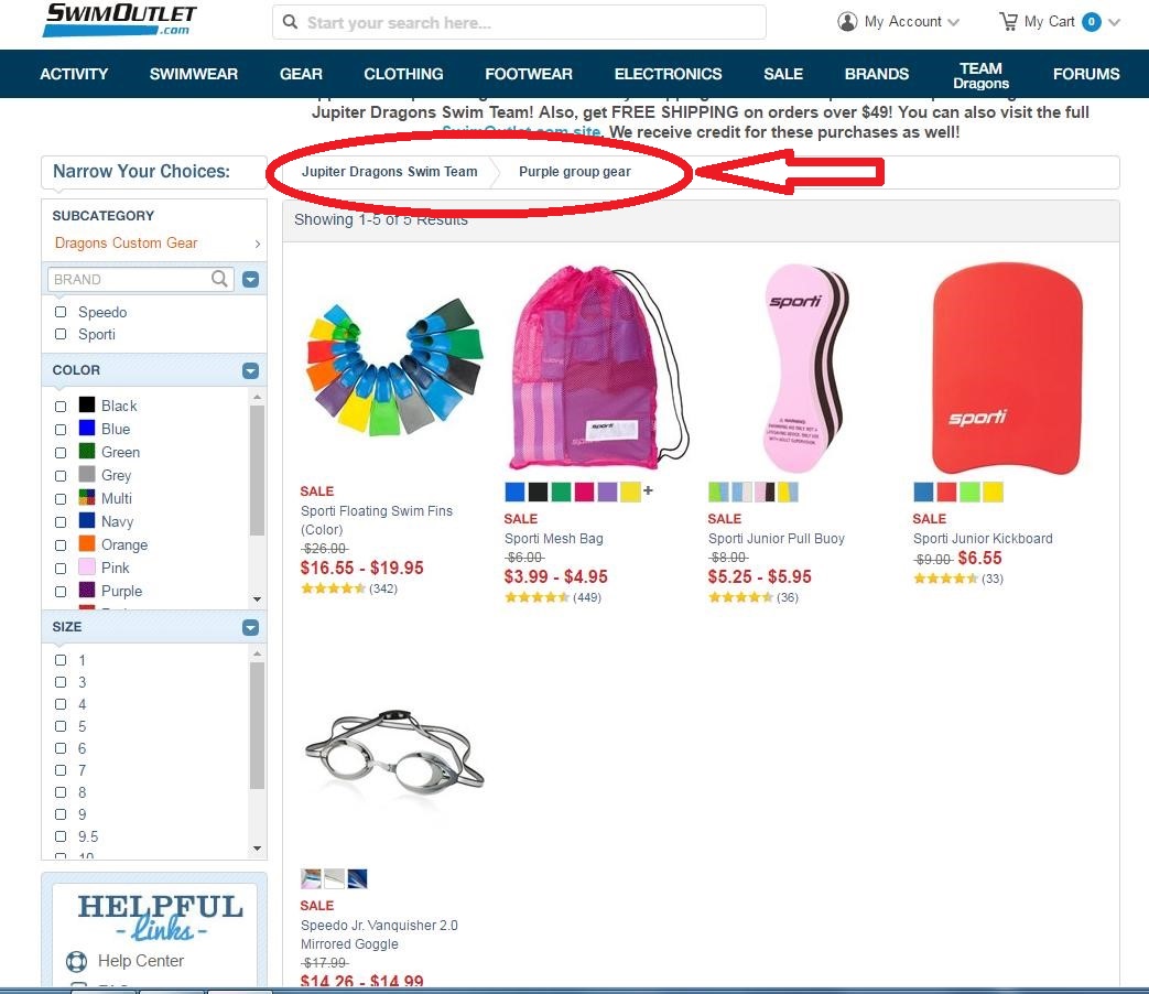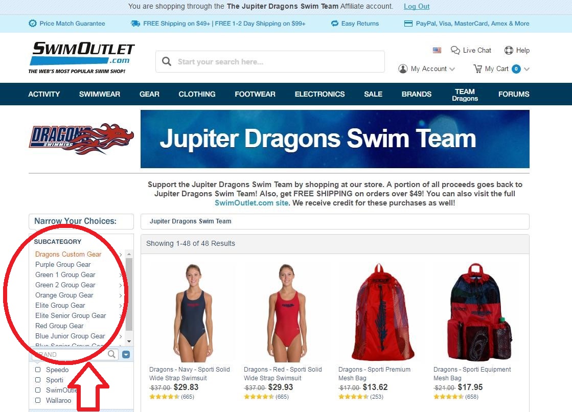 To order practice equipment please login, scroll down to the bottom of the home page and then click on the “SwimOutlet” logo. This will redirect you to the SwimOutlet store.