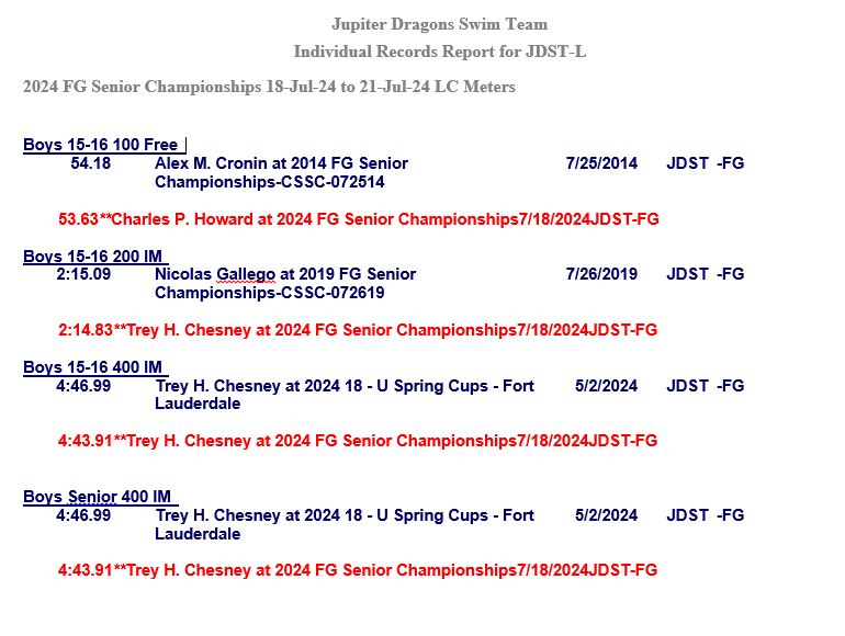 CONGRATULATIONS TO OUR Jupiter Dragons swimmers for swimming their BEST at the Summer Senior Champs in Coral Springs July 19-21, 2024 and WINNING 2nd PLACE FOR BOYS 15&16!!!