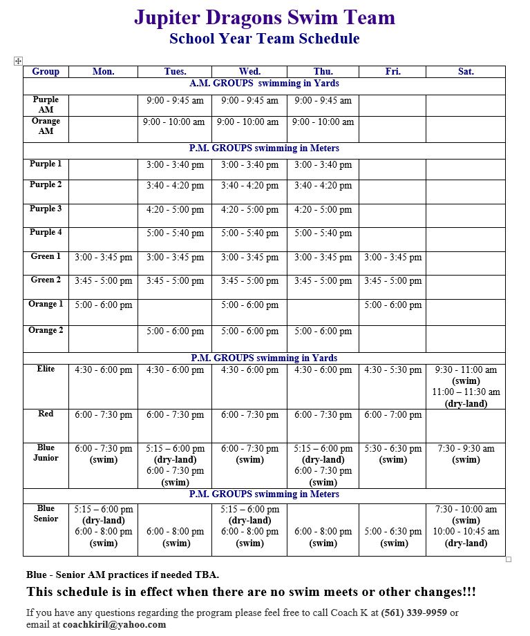 School Year Team Schedule