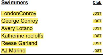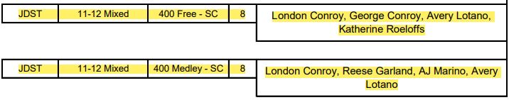 FGC Swimmers - National 'Top Ten' - Relay Rankings