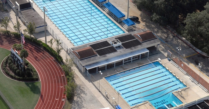 Lobrano Pool - The Lobrano Pool was donated to the Bolles School in 1966 by the Lobrano Family, in memory of Thomas Lobrano. The pool has been home to dozens of Olympians dating back to the 1972 Munich Games and has been the training pool for many of Florida’s fastest swimmers. The 25-yard, eight lane pool features a diving well with two 1-meter springboards. The blue-tiled pool is typically used for training only, with 25-yard high school and U.S.S. meets held in the adjacent Uible Pool.