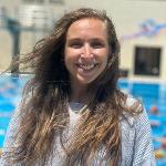 Outside of the pool, Coach Claire likes to spend time at the beach, go for an occasional surf, and foster dogs and cats for a local animal rescue.