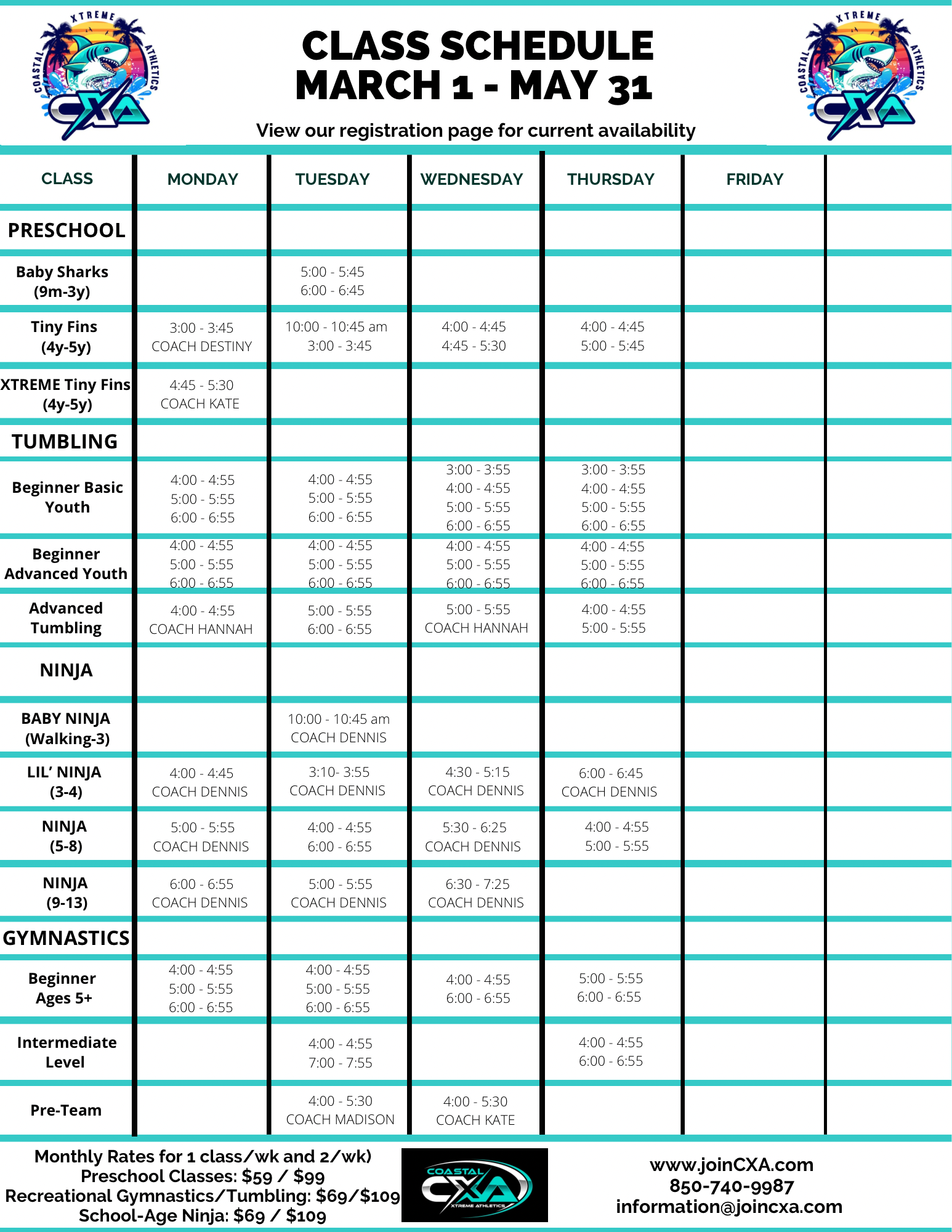 Our "XTREME Tiny Fins" class is perfect for little ones that are 4-5 years old that are looking to learn more advanced skills. This class incorporates different tumbling and gymnastics activities geared for your little one to work on their gross motor skills, fine motor skills, movement, and spacial awareness but it is more structured and focused on strength and skill building. The XTREME Tiny Fins class is a great option for those looking to move into competitive gymnastics in the near future. The class consists of 45-minutes of structured activities and they will be introduced to all gymnastics equipment.