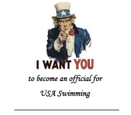 Officials are present at all competitions to enforce the technical rules of swimming so the competition is fair and equitable. Officials attend clinics, pass a written test and work meets before being certified. All parents are encouraged to get involved with some form of officiating.