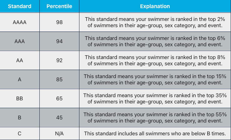 Think of these times as a point of reference that will allow you and your swimmers to know where they stand regarding available swim meets and the ability to qualify for Championship meets like FLAGS.