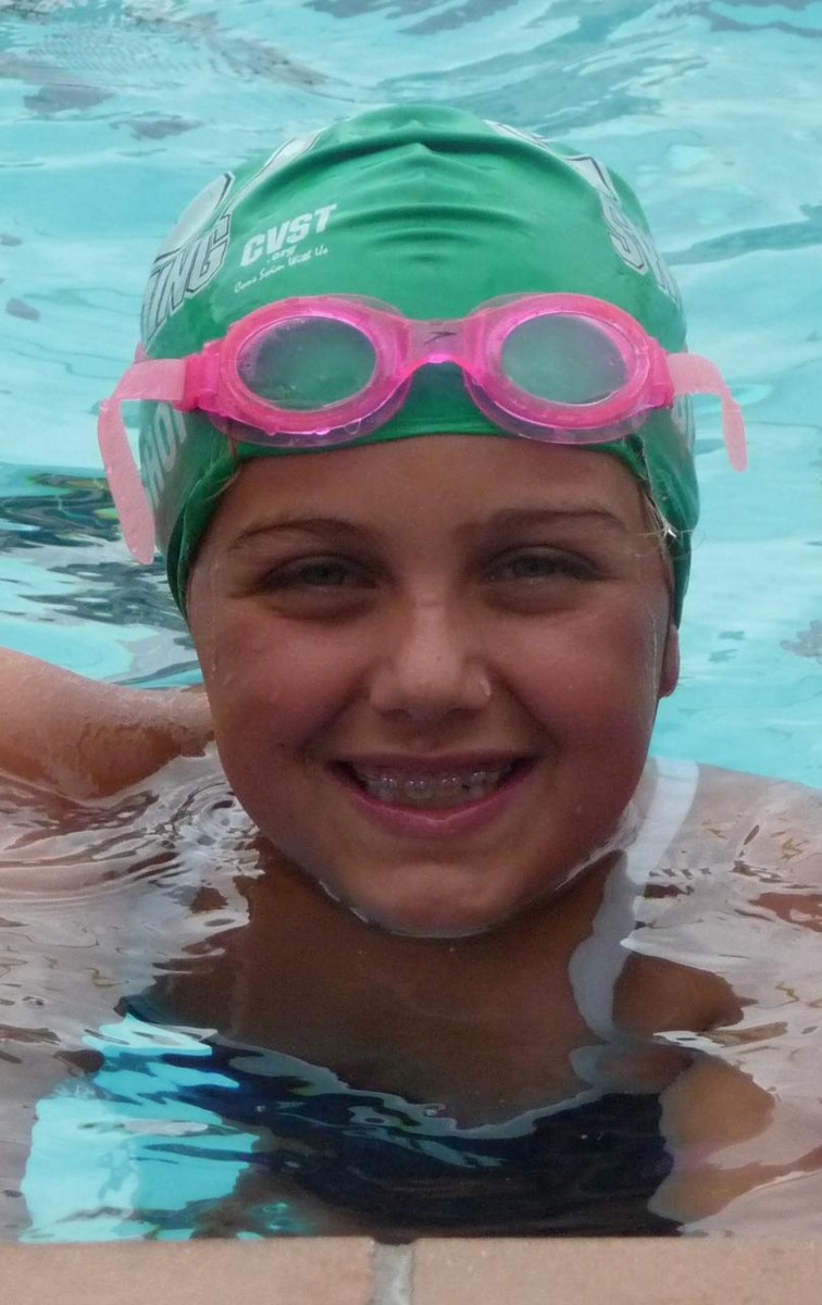 The CVST coaching staff has named Mabry Bishop (9) as its December Swimmer of the Month for her performance at the 2013 Harry B. Meisel Florida Swimming “B” Championships West. At St. Petersburg’s Northshore Pool, the nine year old Silver/Gold practice group swimmer swam to six lifetime personal best times out eight individual races. For the meet, Mabry dropped a total of 24.04 seconds including an impressive 1.60 seconds in her 50 yard Freestyle (32.94), but her most outstanding swim came in a team effort in which she swam the anchor leg in a come from behind victory for the Gold Medal winning 10 and Under Girls 100 Freestyle Relay.