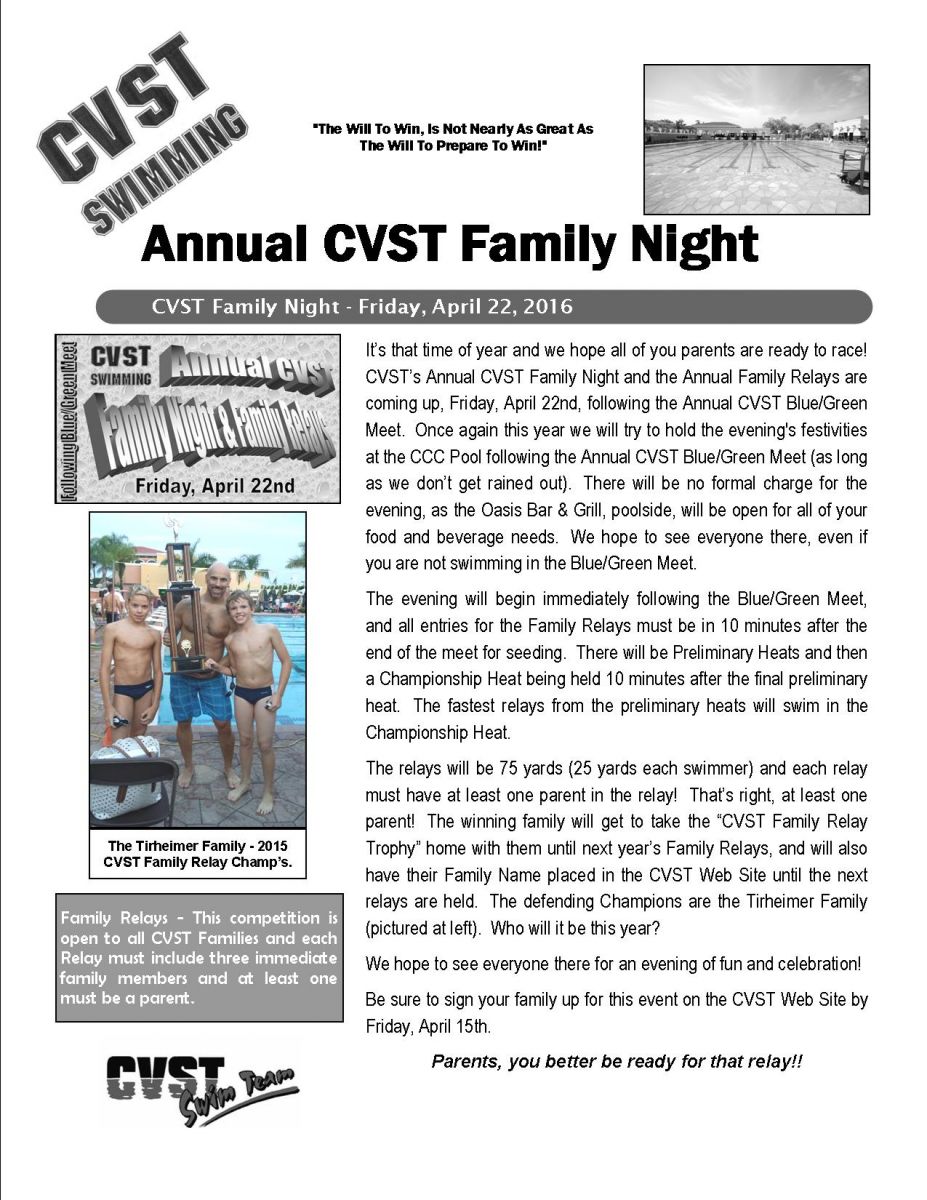 Reminder - CVST Family Night Sign-up Deadline Tomorrow