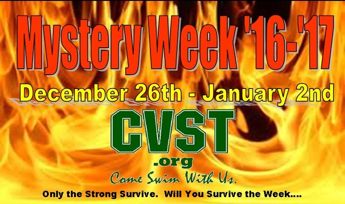 Congratulations to our 2016 CVST Mystery Week Survivors. The swimmers are truly the strongest and most resilient. They have traversed the Law of the Jungle and proved that they have made it through the Survival of the Fittest! Each Survivor will receive a World Reknown and Famous Mystery Week T-Shirt for their efforts. Congratulations to all of you, and great job!