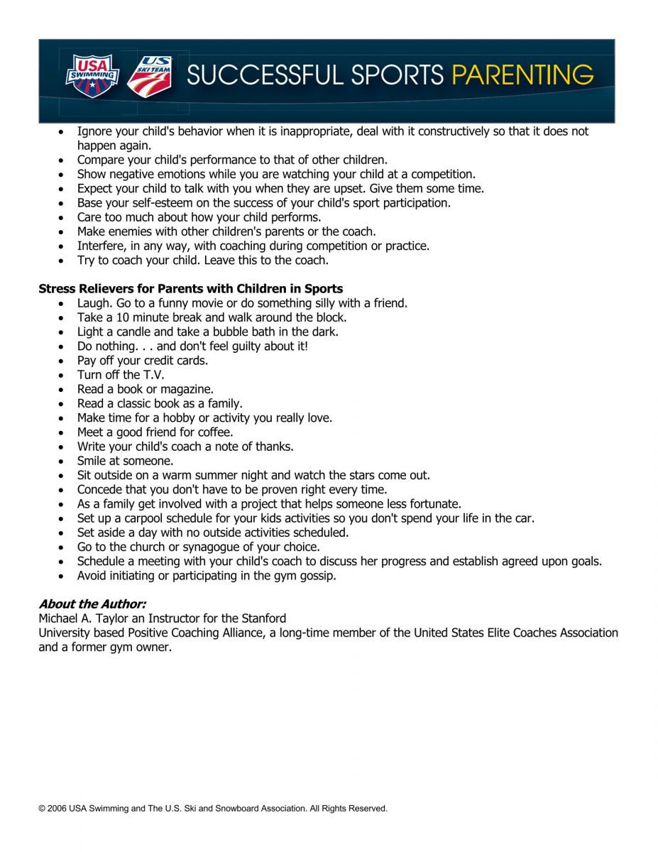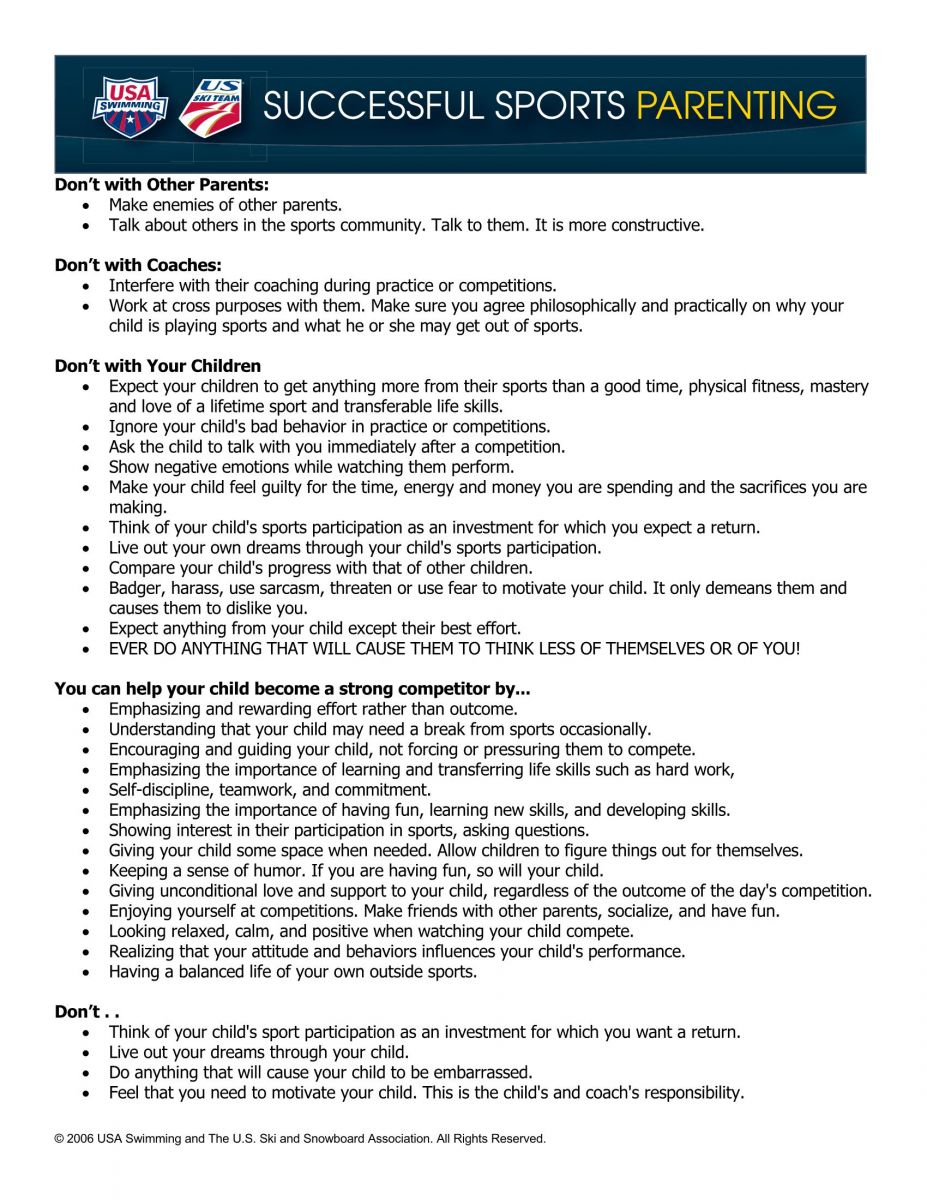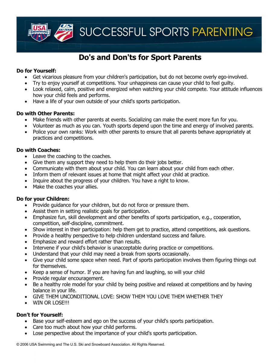 SUCCESSFUL SPORTS PARENTING - Do's and Don'ts for Sports Parents