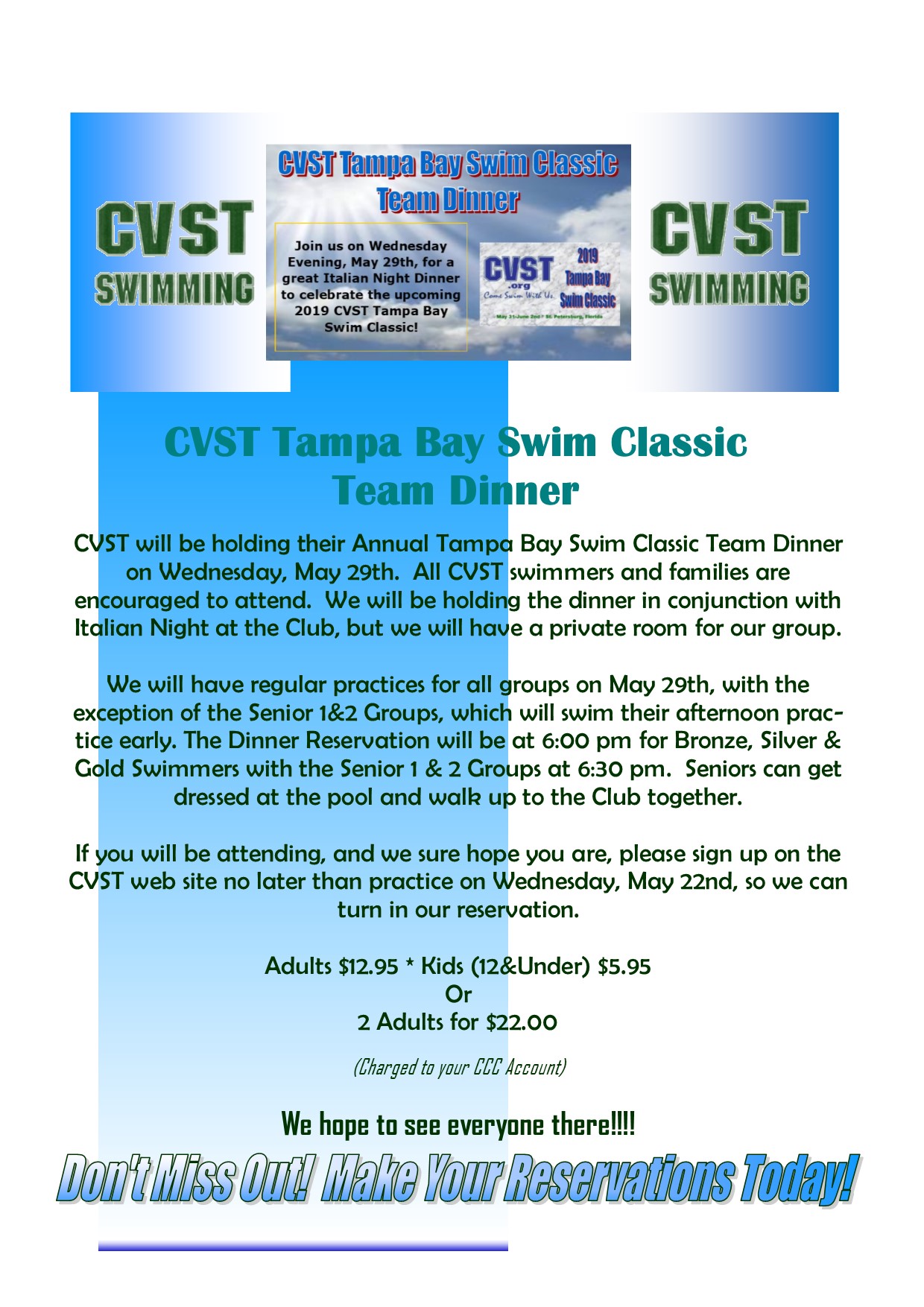 This Wednesday, May 22 - Signup Deadline For Classic Team Dinner