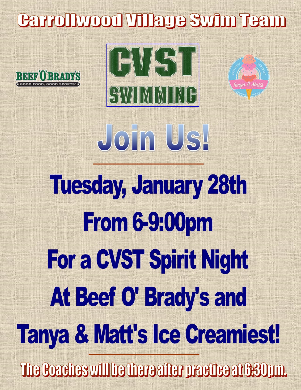Don't Forget CVST Spirit Night Tonight at Beef's & Tanya & Matts