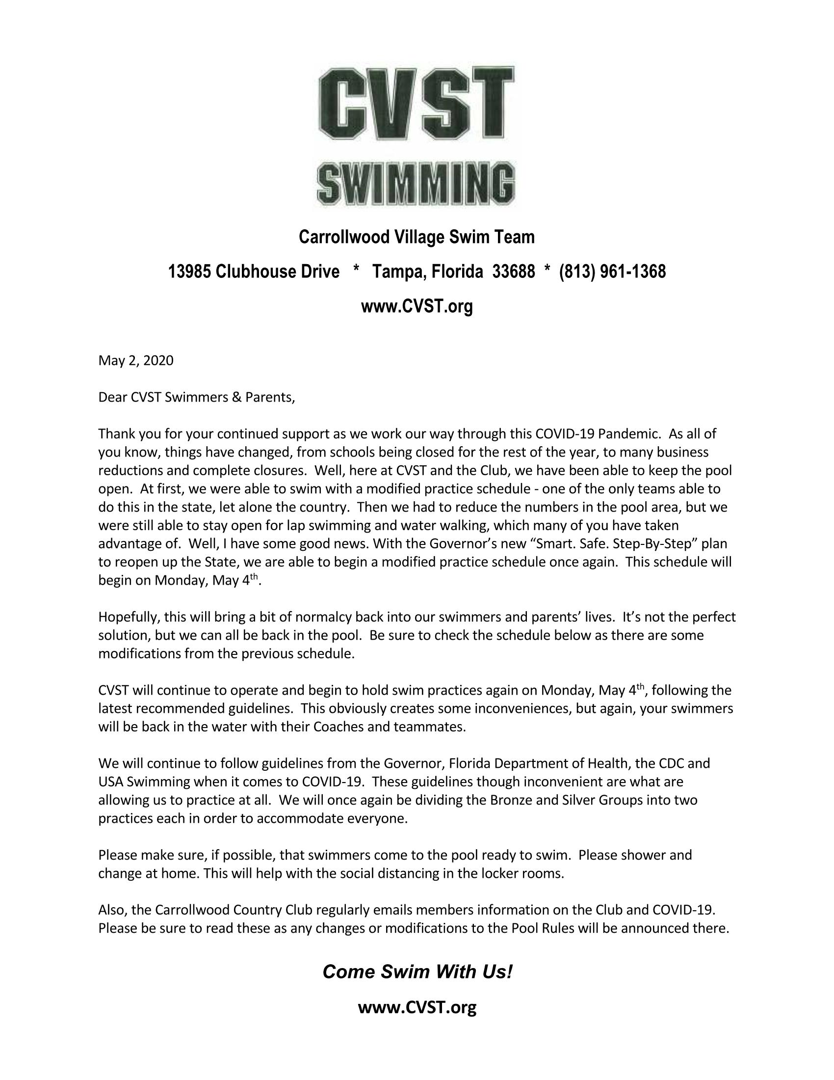 CVST & Florida Phase 1 Reopening - "Smart. Safe. Step-By-Step"