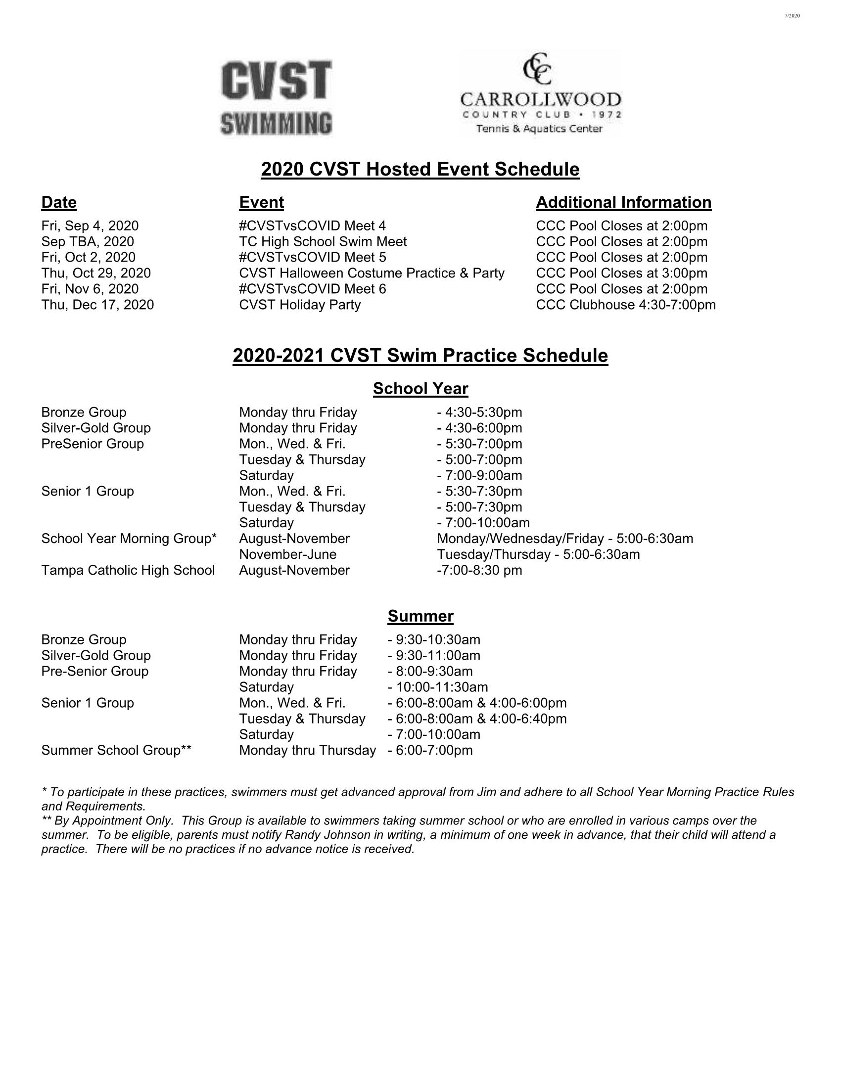 2020-2021 CVST Group Practice Schedules