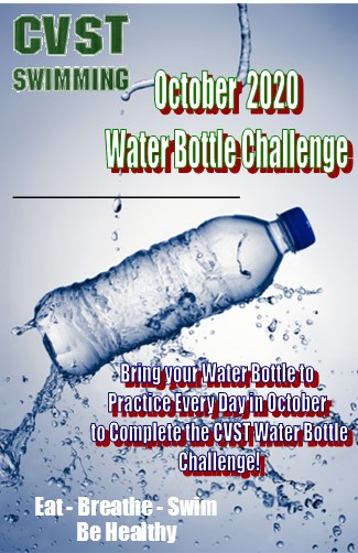 Staying hydrated while exercizing is very important, especially here in hot Tampa! Even when not exercizing it is important to be drinking water and staying hydrated. While swimming we sweat a lot, but don't always realize it because we are already wet, especially in the fall when the water is warm and the air is cooling off. That is why your CVST Coaches, Jim, Randy, Emma & Meredith are all challenging you, to complete The Water Bottle Challenge. All you have to do is make sure you bring to bring a bottle of water (at least 12 ounces) with you to practice every day and drink it over the course of the practice session!