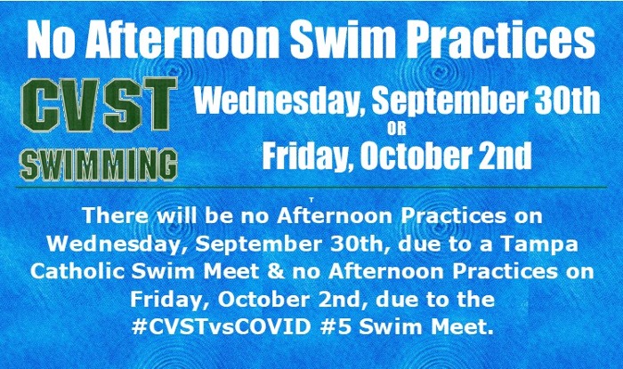 There will be no afternoon practices on Wednesday, September 30th or Friday, October 2nd, this week.