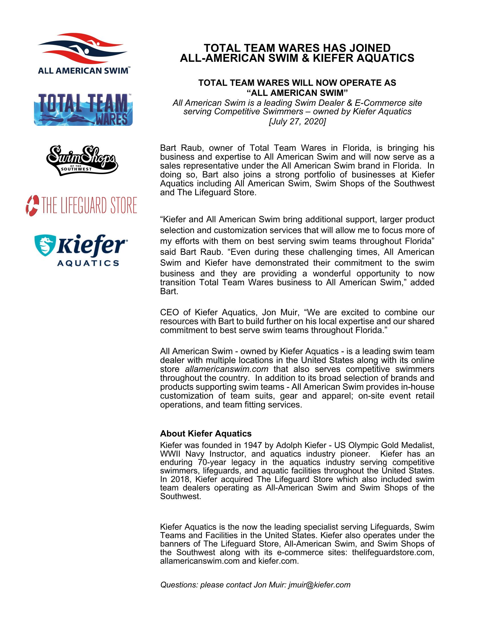 Total Team Wares Joins Kiefer Aquatics, All-American Swim