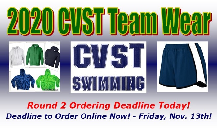 The Deadline for Round 2 of ordering our CVST Team Gear for the 2020-2021 swim season is Today.