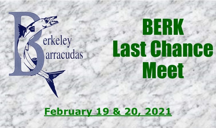 All the information you need for this wekeend's Berkely Last Chance Meet is now available at the Event Page on this web site. The Meet Letter, Psych Sheets, Estimated Timelines, COVID Protocols, Warm-up Assignments, Heat Sheets and More are all now posted!