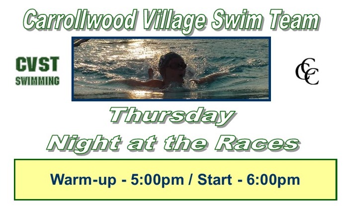 Warm-ups begin at 5:00pm for all CVST Swimmers and the Meet will begin at 6:00pm.