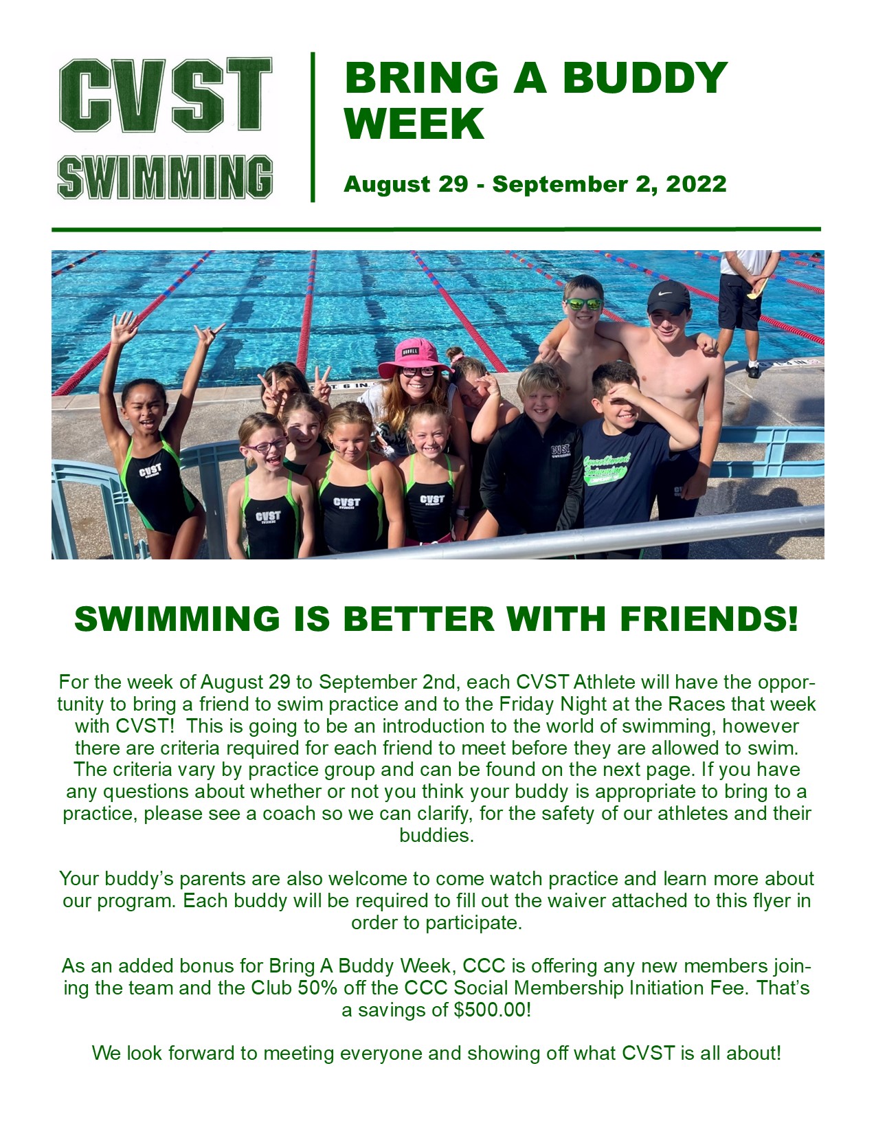 CVST Bring A Buddy Week, August 29-September 2, 2022