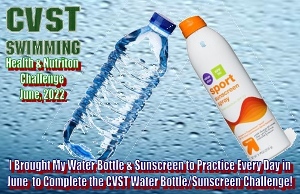 Congrat's to the CVST June Health & Nutrition Challenge Winners & July's Challenge Congratulations to CVST's Jax Repak, Julia Laine, Sutton Lynch, Bella Herrera, Alex Myers & Sky Steele for completing the Sunscreen & Water Bottle Challenge. These swimmers brought their water bottles everyday to practice and also slathered on their sunscreen each day before getting into the pool! Great job girls! Where were our boys on this one? Next month's Challenge will begin on Tuesday, July 5th, and here's all the information: This month’s CVST Health & Nutrition Challenge...
